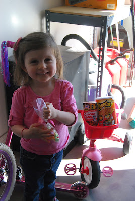 She followed her different clues which eventually led her out to her bike basket where her snack was.